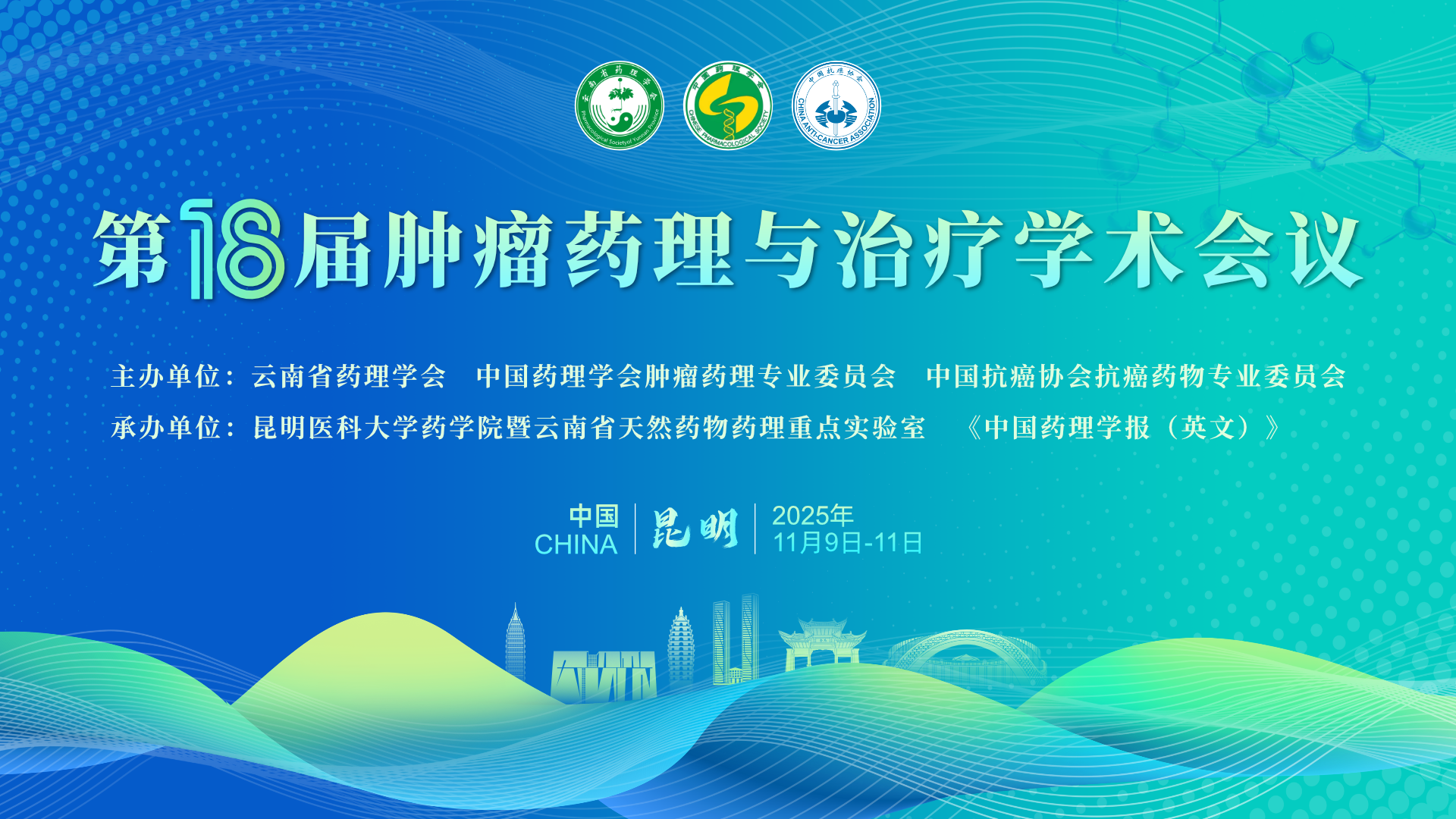 由云南省药理学会、中国药理学会肿瘤药理专业委员会、中国抗癌协会抗癌药物专业委员会共同主办,昆明医科大学药学院暨云南省天然药物药理重点实验室和《中国药理学报(英文)》共同承办的“第十八届肿瘤药理与治疗学术会议”,将于2025年11月9 日-11日在云南省昆明市云南海埂宾馆召开。